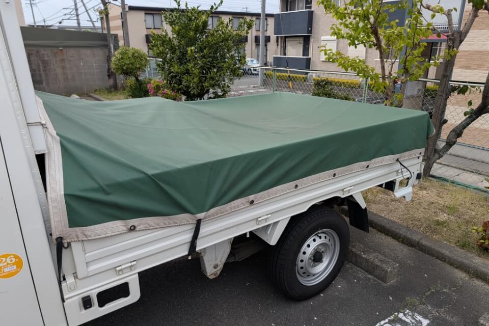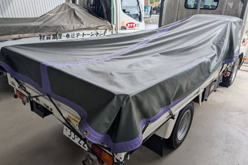 耐候性・防水性に優れ、荷物を確実に保護する高耐久シートです。日除け・雨除けになります。荷台からの荷物の落下・飛散を防ぎます。
