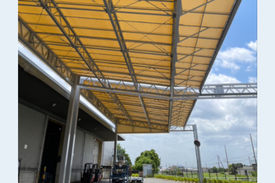 工場や倉庫の屋外スペースに設置し、作業場を雨や日差しから守ります。